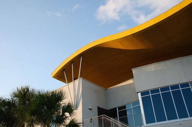 Sometimes architectural language helps create a memorable landmark, even if unintended. One modern office building on College Parkway, a major road through Fort Myers, features a distinctive, wavy yellow roof. An otherwise simple and elegant office building is topped off with a colorful “floating” roof that provides both shade and a bold identity. That single architectural design element has made it a recognizable and often-referenced landmark for locals.