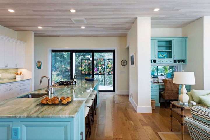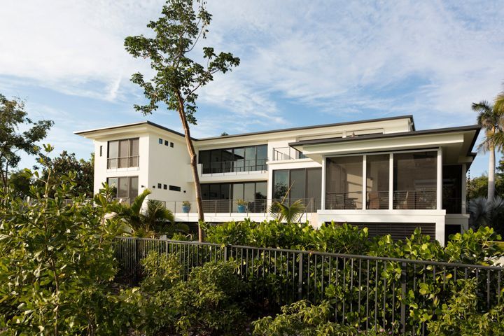 Joyce explains, “The spaces are very modern (in) how they flow into one another. It was really all about the light and space and the simple transition between rooms without blocking them with doors. It’s just very open and bright. I tried really hard (to ensure that) even though the home is traditional from the front, there is still plenty of light coming into the middle of the house as well as from the Gulf side.”