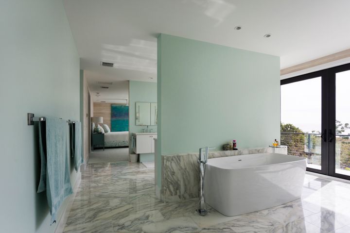 An extra touch added to this home is the open-wall concept evident in the master suite. In this section of the home, instead of doors, perpendicular partial walls offer unobstructed views of the Gulf through floor-to-ceiling windows.