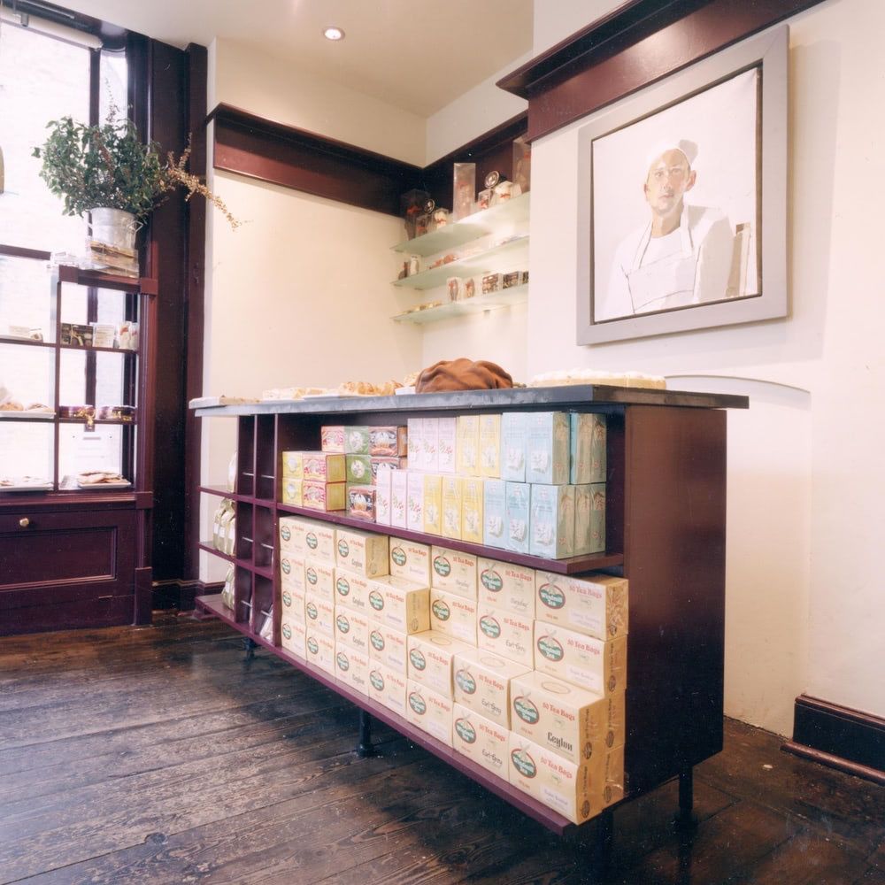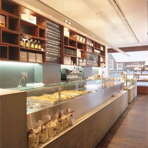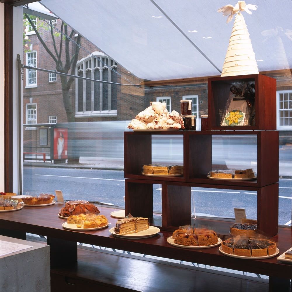 "This is Azman Owens’ third project for the baker…The Konditor & Cook Bakery shop—which sells cakes, bread and savouries—is a far cry fro the lino-floor and plastic-shelves-lined-with-white-sliced type of establishment that the description suggests. Now, the architects are becoming known as the designer dream team to Waterloo’s fashionable elite.”